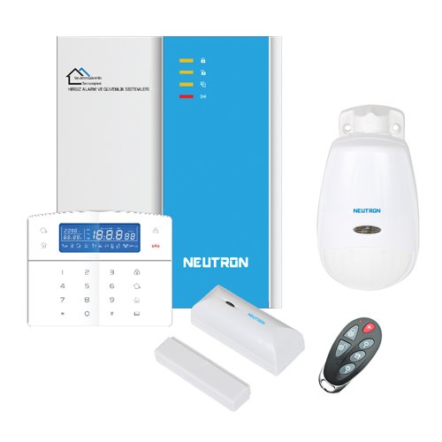 Neutron SmartHome Elektronik Güvenlik Sistemleri paketinde; bir adet kontrol paneli, bir adet keypad, bir adet manyetik kontak, bir adet pır detektörü ve iki adet mini kumanda bulunuyor.