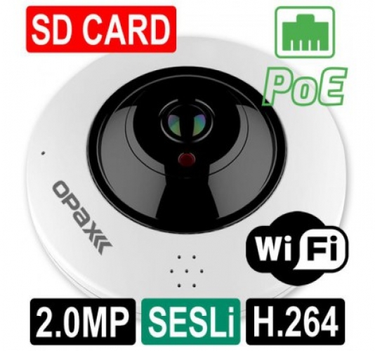 2 MP (1520x1520) H.264 SD CARD, POE, WiFi, ALARM, CVBS VE SESLİ PANAROMİK FISHEYE KAMERA