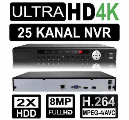OPAX-25001 4K 25 KANAL 2 HDD NVR H.264 KAYIT CİHAZI